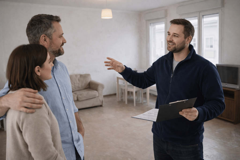 Nous vous remettons un devis chiffré poste par poste : chaque lot de travaux (plomberie, électricité, plâtrerie, carrelage, peinture, revêtement de sol) est détaillé avec les prestations, les quantités et les prix. Pas de forfait global opaque : vous savez exactement ce qui est prévu, et à quel coût. Ce devis s’accompagne d’une estimation de la durée du chantier.