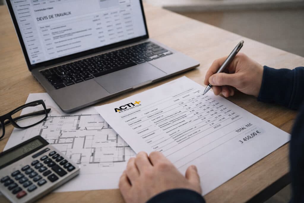 Une fois le devis validé, nous établissons un planning d’intervention en coordonnant nos différents corps de métier. Nos artisans étant tous salariés d’Acti Plus, nous maîtrisons directement leur disponibilité et l’enchaînement des interventions — sans dépendre de sous-traitants extérieurs. Le chantier démarre à la date convenue.