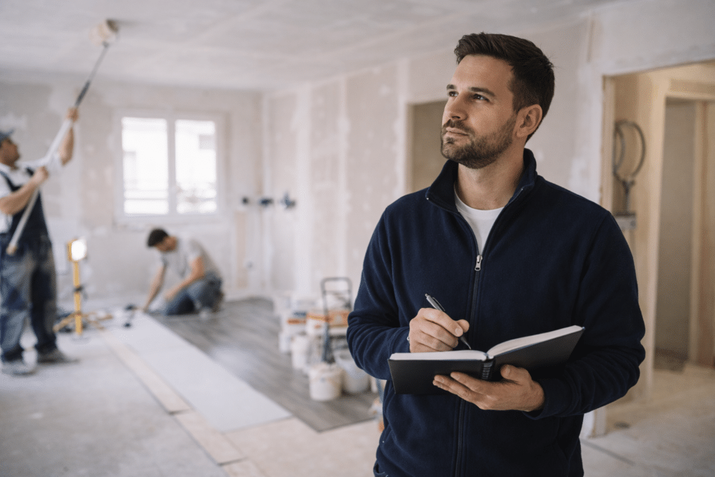 Peintres, plaquistes, plombiers, électriciens, carreleurs : tous font partie de notre équipe. Pas de sous-traitance, une seule responsabilité.